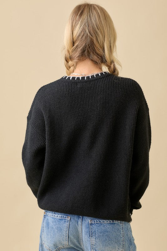 JUST HT THE BOUTIQUE! The title is the only thing scary about this cozy sweater!Halloween "Boo" Sweater With 3D Braided Writing And Contrast Stitching Detail 100% ACRYLIC