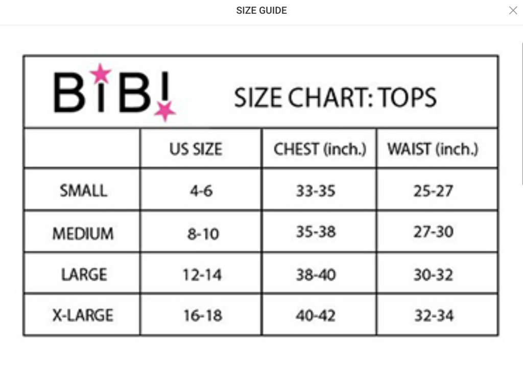 Sizes Small to XL