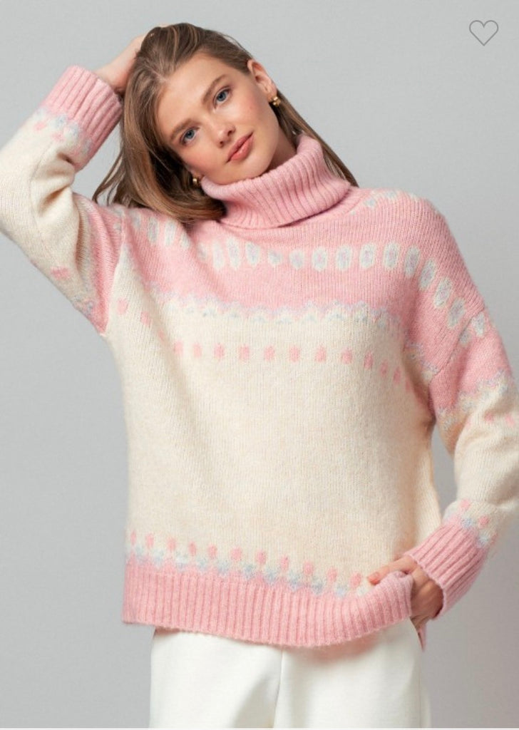 Fair Isle Turtleneck Knit Sweater